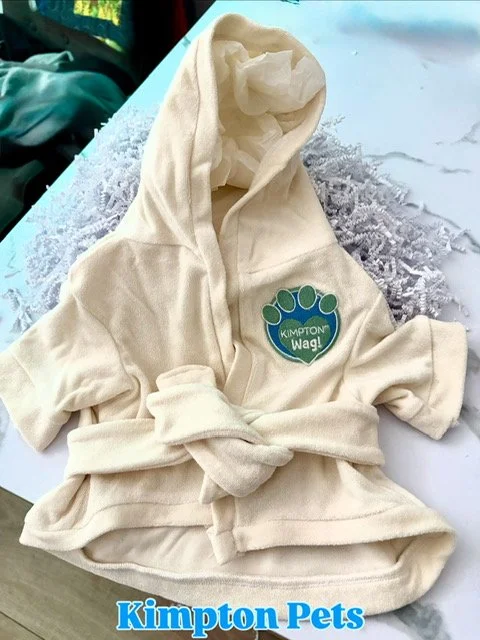 Koda is so excited to have received this plush dog rob in the mail. It will be featured on our next Kimpton stay.