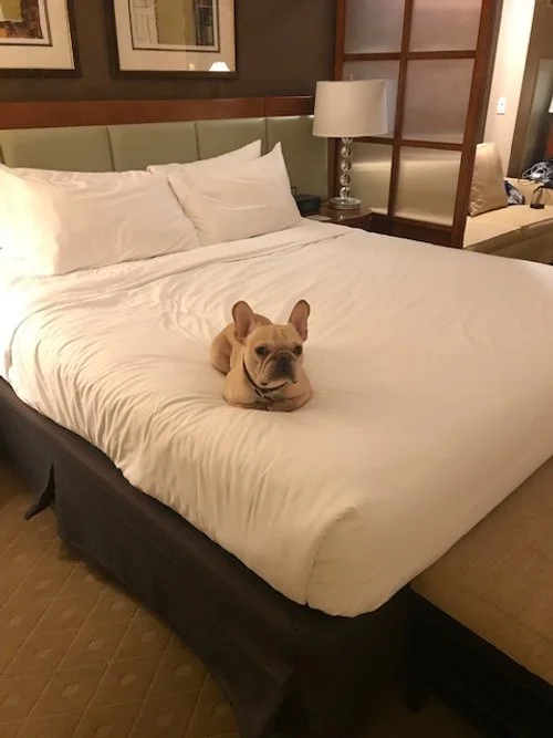 No extra pet fees here! This place totally gets it - every hotel stay is better with a Frenchie co-pilot!